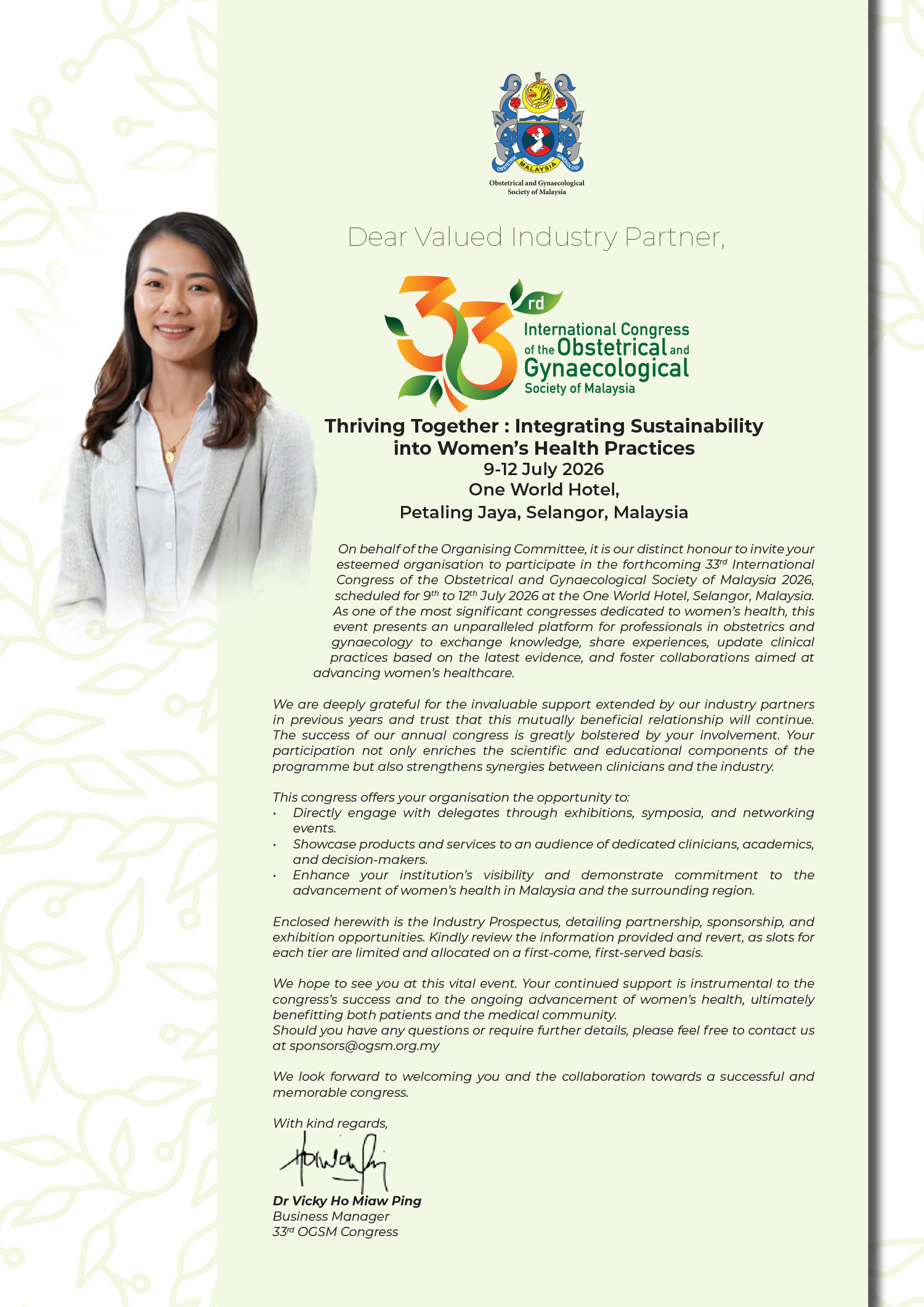 We hope to see you at this vital event. Your continued support is instrumental to the congress’s success and to the ongoing advancement of women’s health, ultimately benefitting both patients and the medical community.